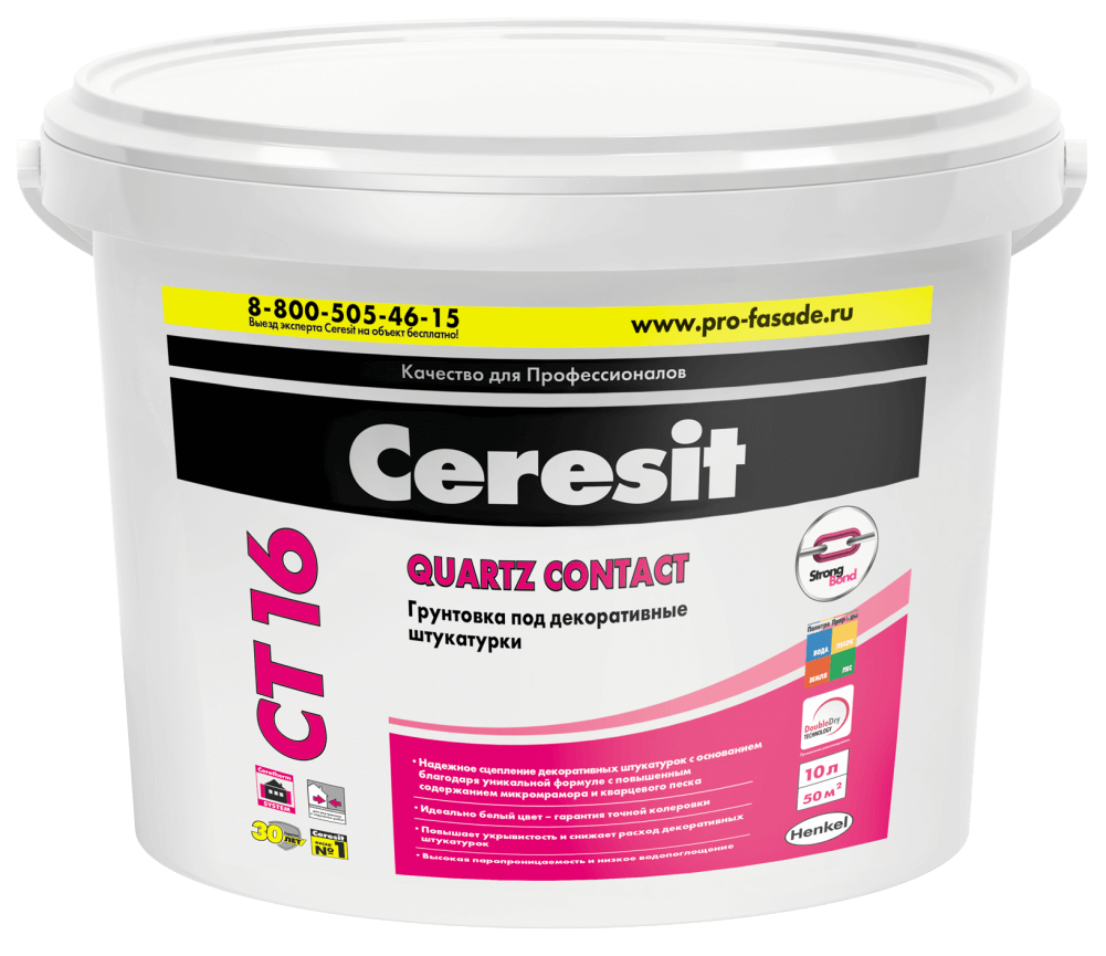 Содержит мелкий кварцевый песок, придающий загрунтованной поверхности шероховатость, благодаря чему грунтовка значительно повышает адгезию декоративных покрытий к основанию. Выпускается белого цвета, при необходимости может быть колерована в цвет последующего покрытия.